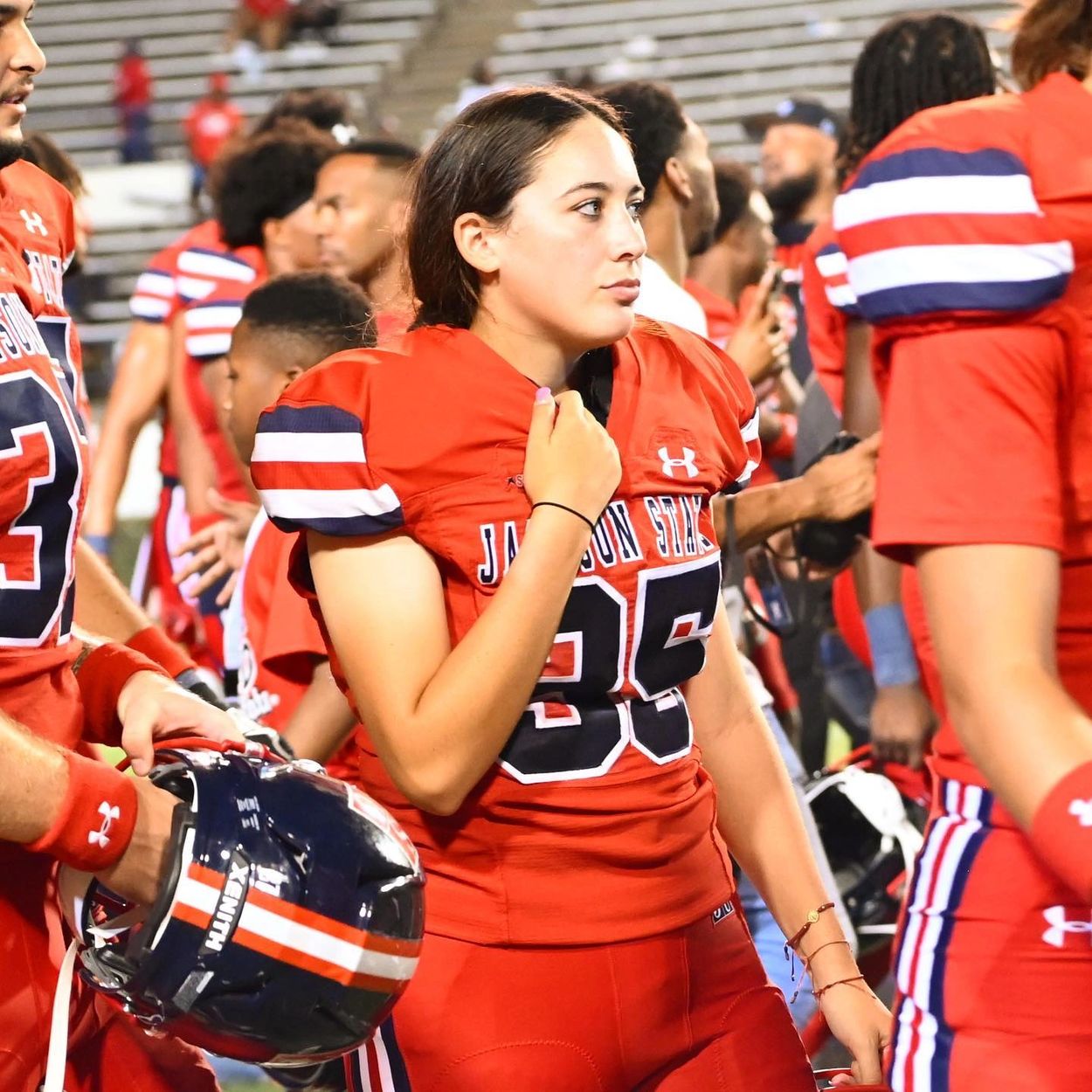 This historic photo is a picture of the first female college football player to play in the SWAC and win a SWAC championship game.