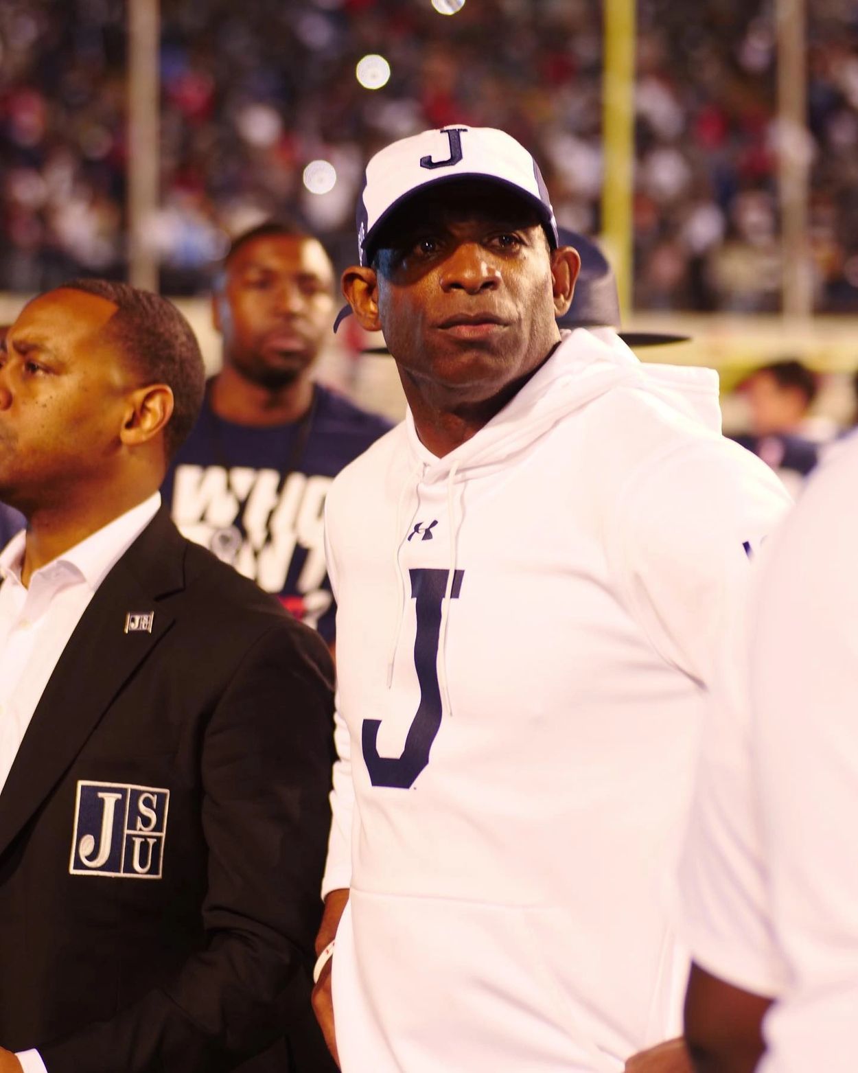 Deion Sanders looks into the crowd of the fans of the Jackson State football team after a win home game.